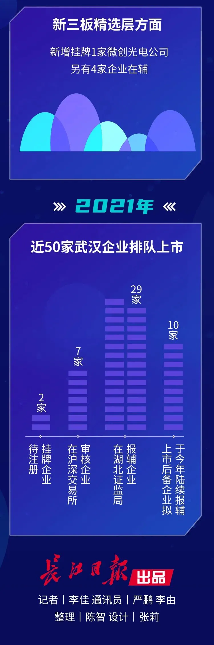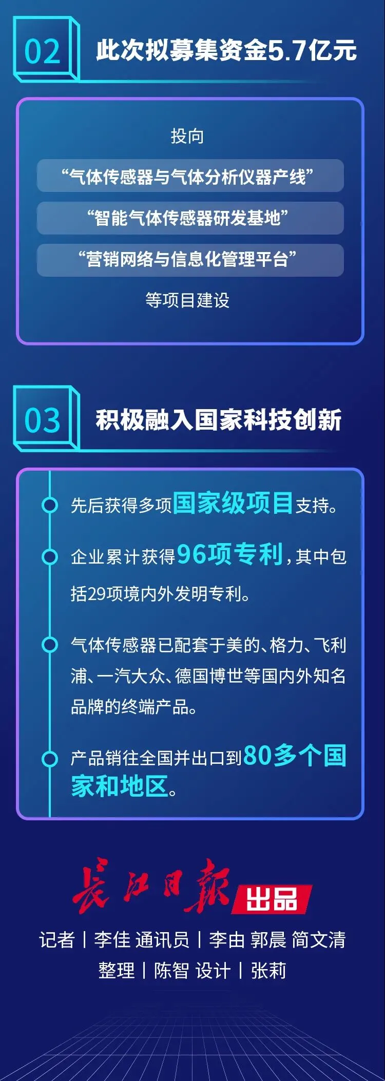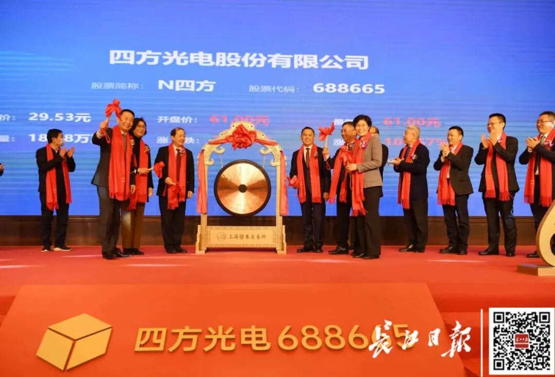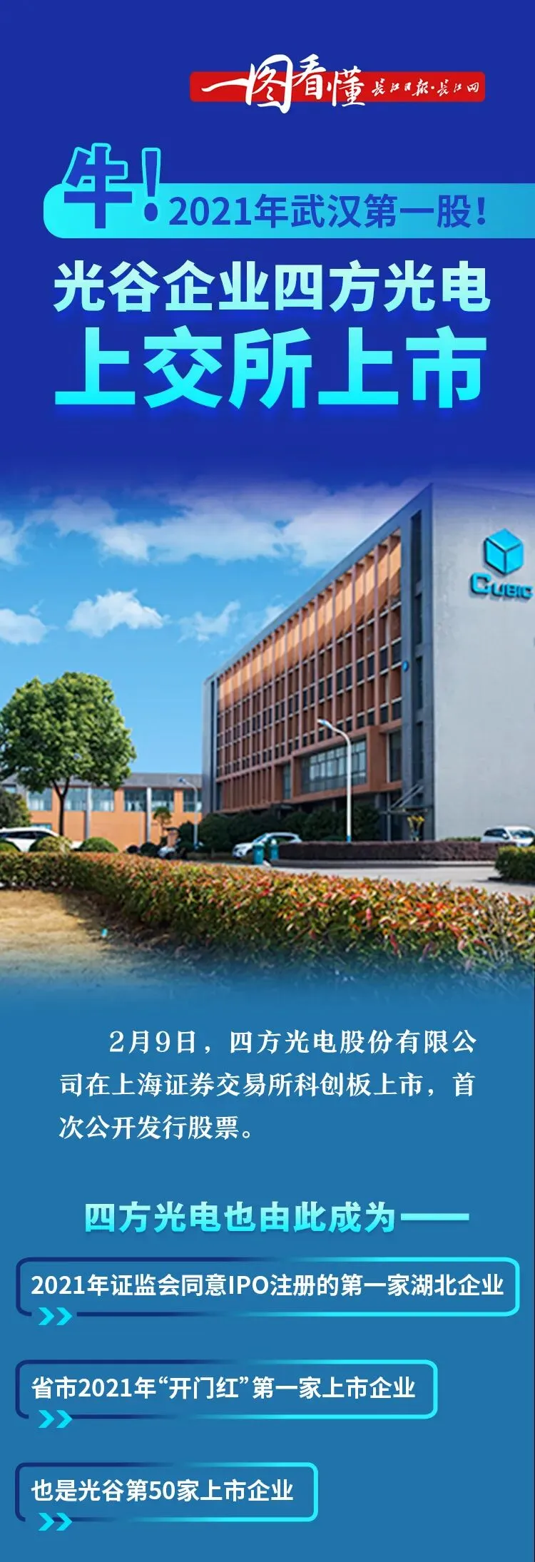 根据四方光电发布的财务数据显示,截至2019年底,该公司资产总额2.39亿元。最近三个会计年度(2017年至2019年)营业收入分别为1.05亿元、1.17亿元和2.33亿元,净利润分别为1487万元、1099万元和6386万元。公司此次拟募集资金5.7亿元,投向“气体传感器与气体分析仪器产线”“智能气体传感器研发基地”“营销网络与信息化管理平台”等项目建设。据《东湖高新区关于促进企业上市的若干政策》(简称“上市十条”),四方光电将享受最高400万元奖励。而上市前,200万元奖励已发放。东湖高新区金融办主任秦军介绍,“上市十条”对企业上市分阶段给予400万元奖励,将奖励阶段适当前移,企业为上市所做的股改、融资、并购重组等都有奖补,甚至还有广告费补贴、关键人才猎头费补贴等,变“锦上添花”为“雪中送炭”。开门红!双喜临门!2月9日,四方光电股份有限公司在上海证券交易所科创板上市。2月8日,另一家光谷企业武汉中科通达高新技术股份有限公司首发申请通过上交所科创板上市委审核,成为今年省市首家过审企业。近三年来,光谷新增13家上市企业,堪称“上市谷”。“无论从基数到质量,光谷上市,都已形成了一个土壤和生态。”东湖高新区金融办主任秦军介绍,光谷已成全国上市最密集区域之一。目前,东湖高新区上市公司总数已达到50家,新三板挂牌企业数累计达到138家,武汉股权托管交易中心(四板)挂牌企业数超过400家。未来,光谷科创企业还将在上市跑道上扩容增速。“报会一批、辅导一批、改制一批、储备一批”,企业上市不断档。2021年,武汉排队上市牛气长、后劲足,2家企业待注册挂牌,7家企业在沪深交易所审核,29家企业在湖北证监局报辅,还有10家上市后备企业拟于今年陆续报辅。同时,110家企业和62家企业分别成为2020年武汉市上市后备“金种子”企业和“银种子”企业。