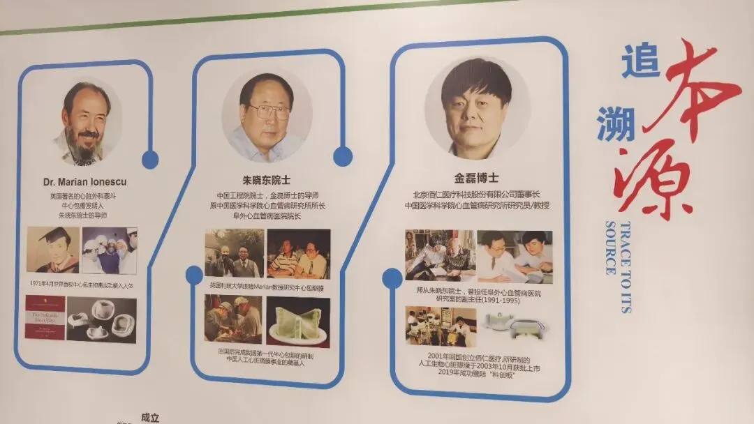 在佰仁医疗的展示厅里,三张照片 及相关资料并排悬挂:Ionescu博士、朱晓东院士、金磊博士。这不仅是三个人的合影,更是人工心脏瓣膜发展史的三个关键坐标。