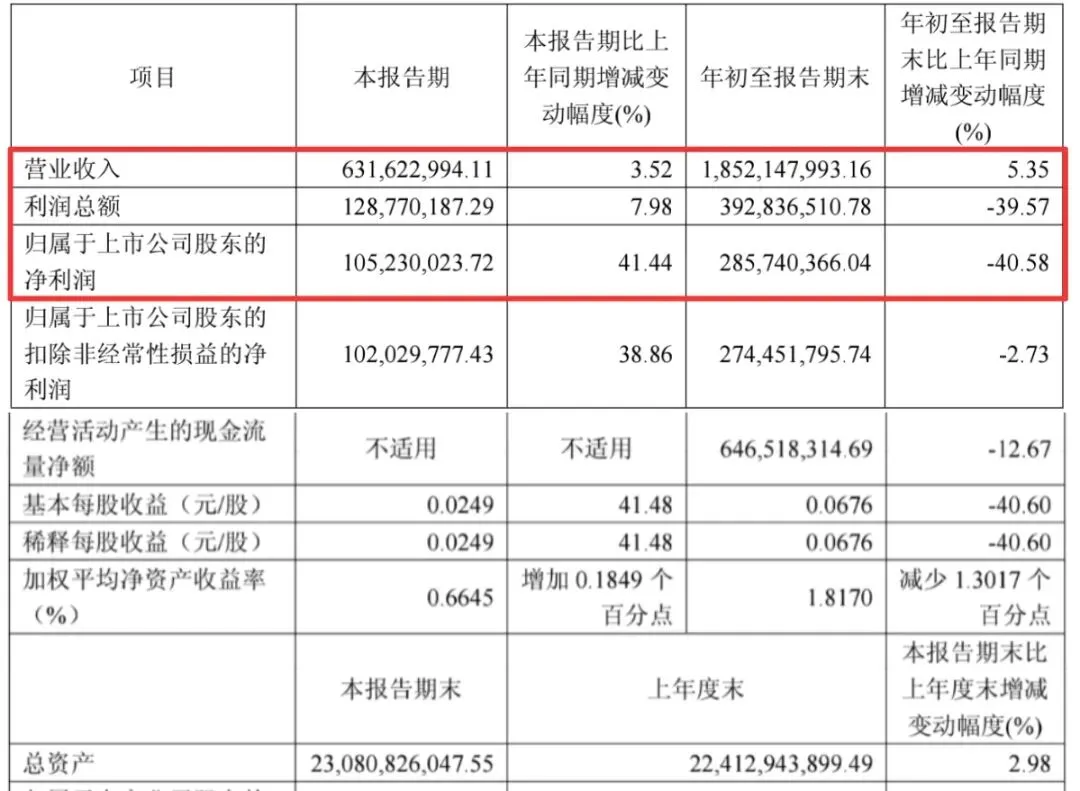 但利润端出现波动。同期归母净利润约为2.86亿元,同比下滑明显。