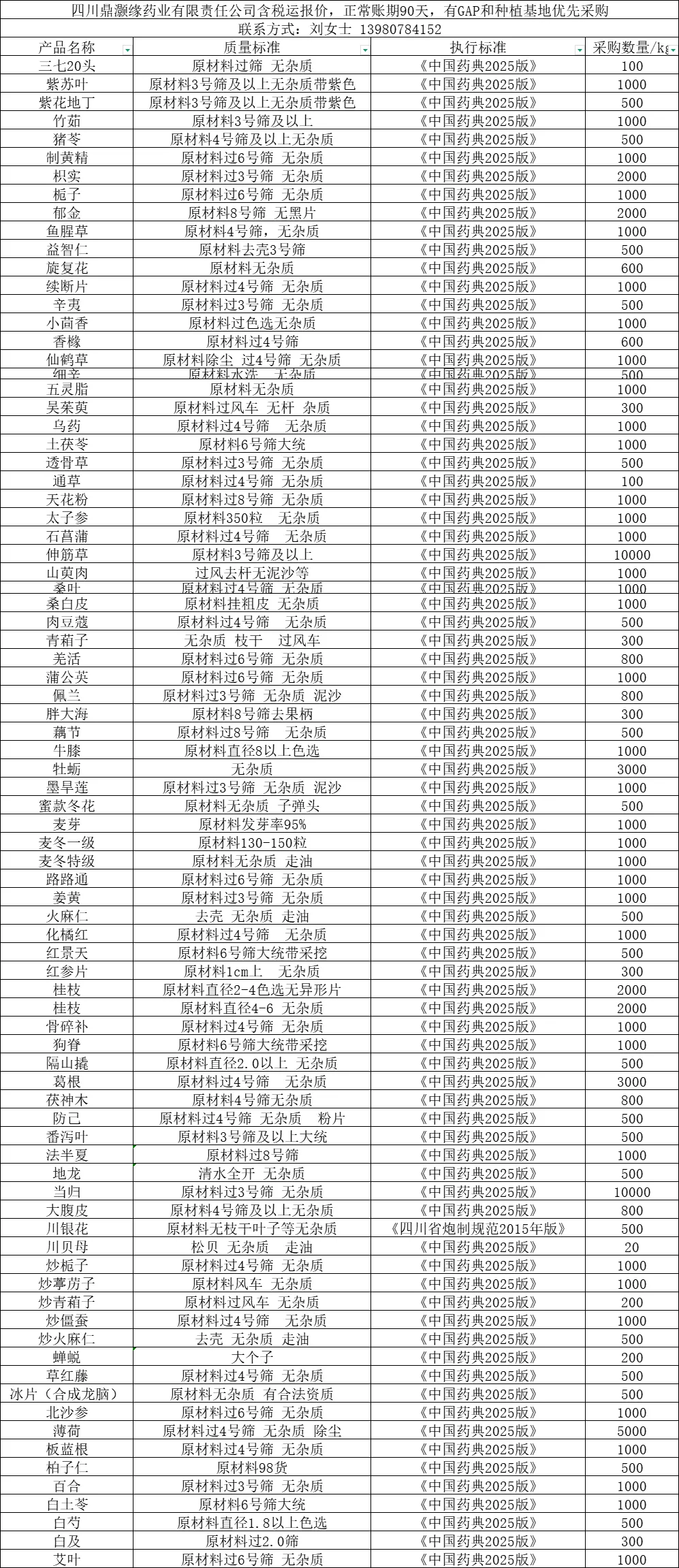 四川鼎灏缘药业有限责任公司招标采购81个品种 免费查看采购联系方式 中药材采购招标计划2026.1.5