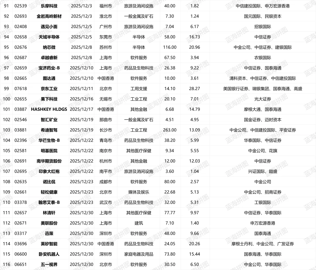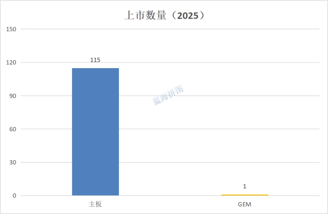 2025年,港股上市116家公司,主板(115)、GEM(1)。