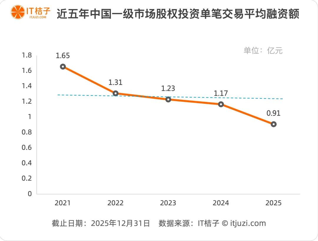 从2021年到2025年,单笔投资平均金额的变化轨迹十分清晰: