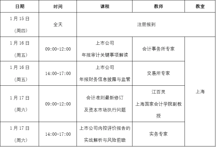 为帮助上市公司董监高、财务负责人、证券事务代表、财务骨干等相关人员精准把握监管政策导向,熟练掌握年报编制实操技能,有效提升财务信息披露质量,防范合规风险,上海国家会计学院特邀实务专家和学院教授联袂授课,推出了“上市公司年报编制与财务信披质量提升”专题培训班。