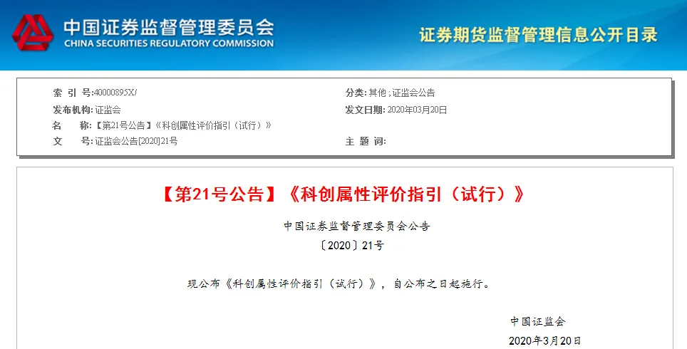 科创板正式推出运行整一周年之际,2020年3月20日,证监会发布了《科创属性评价指引(试行)》,采用“常规指标+例外条款”结构,企业如同时满足3项常规指标,即可认为具有科创属性;如不同时满足3项常规指标,但满足5项例外条款任意1项,也可认为具有科创属性。这为科创板定位提供了明确的制度保障,也进一步提高了IPO企业的入门要求,同时把科创板浑水摸鱼的公司拒之门外。