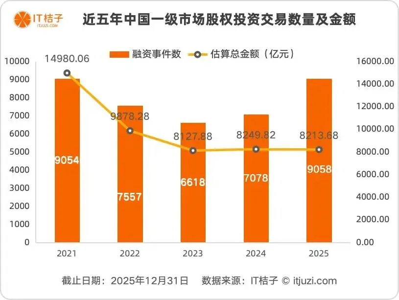 投资交易数量增长28%2025年共发生9058起投资交易,较2024年增长28%,日均多出近5起投资事件,已超过2021年鼎盛时期。