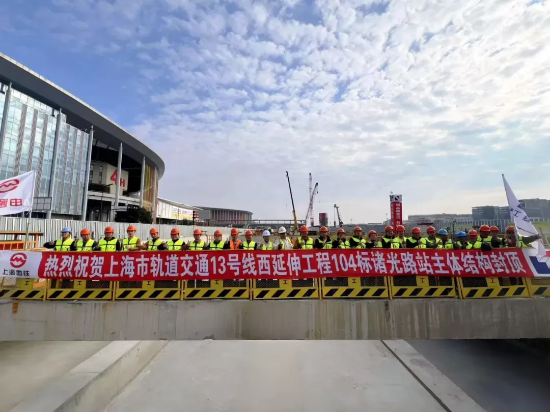 2025年12月,随着最后一块顶板混凝土浇筑,由上海建工承建13号线西延伸工程104标国家会展中心站(诸光路站)主体结构封顶。