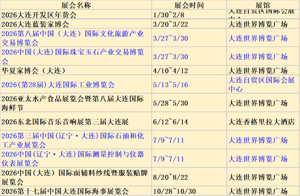 下面没有包括大连国际会议中心举办展会信息,大连国际会议中心的展会信息是每月在公众号发布。