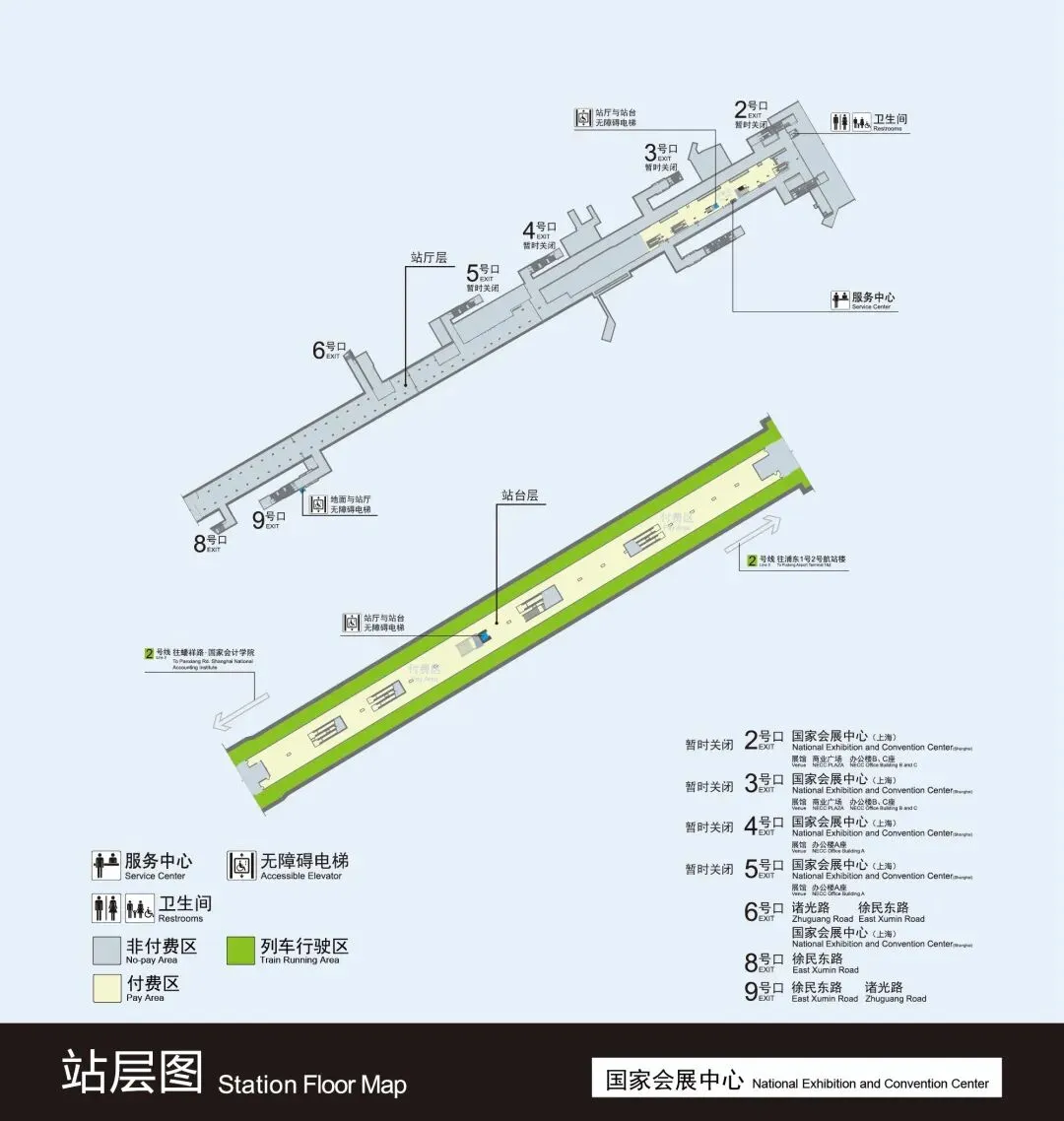 为配合车站改造施工(通道内地砖及墙面更换)及车站防汛改造施工,自2026年1月6日起, 2号线 国家会展中心站2、3、4、5号出入口将临时关闭。在此期间,乘客可通过其他出入口进出车站。并对外公示。