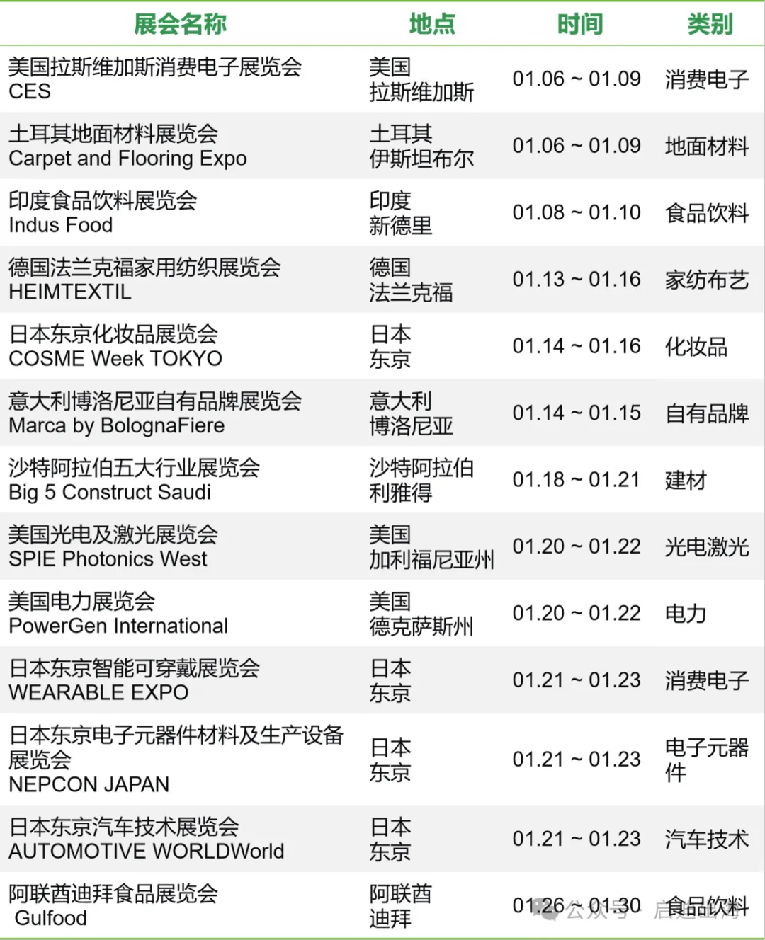 1月国际展会精选