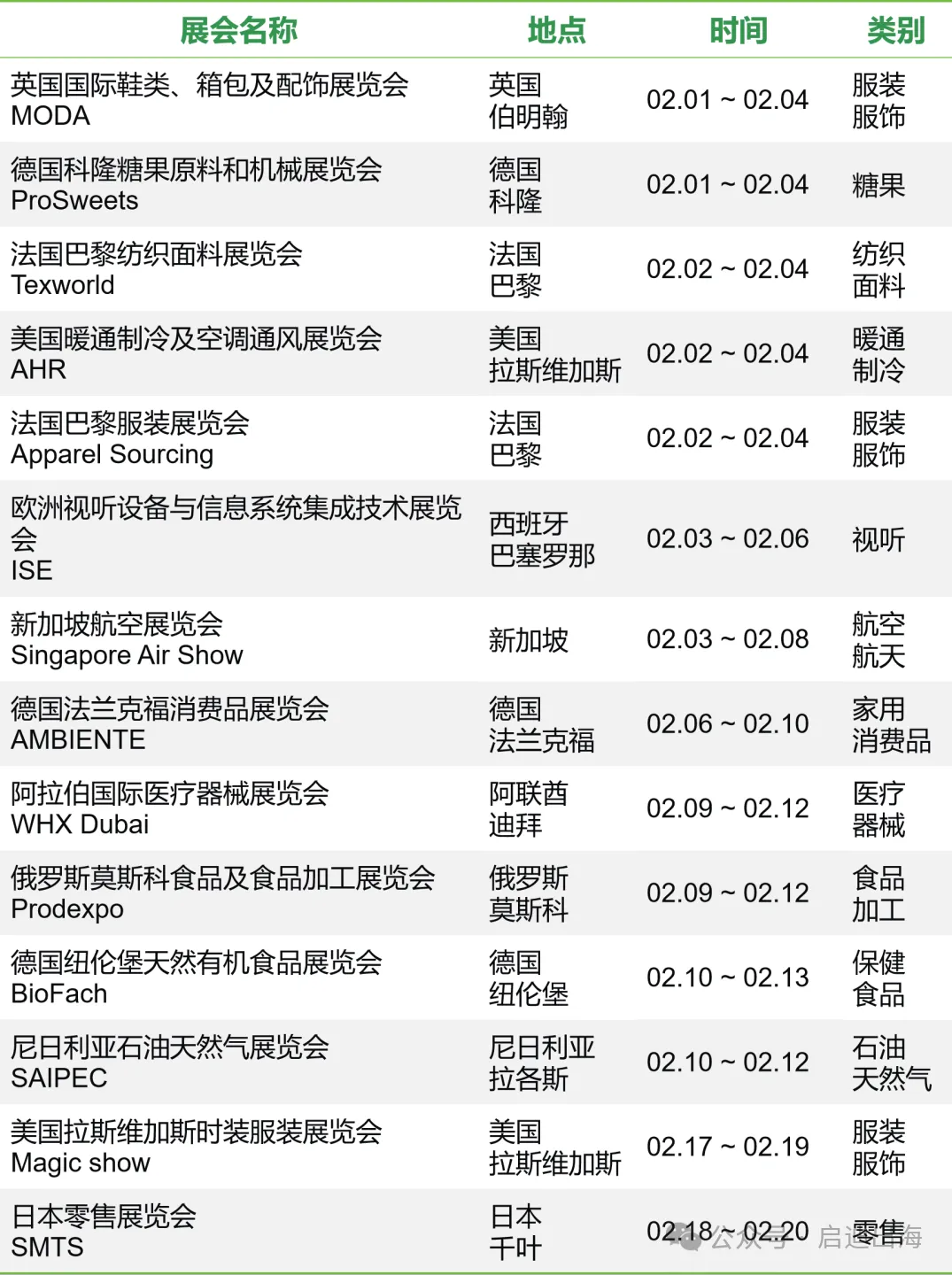 2月国际展会精选