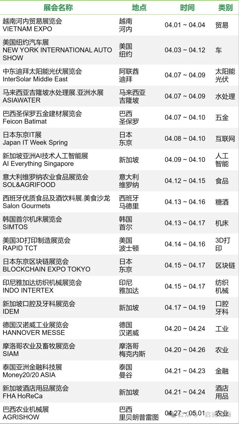 4月国际展会精选