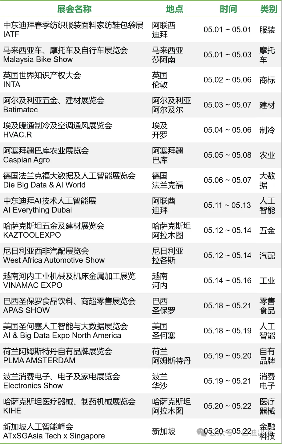 5月国际展会精选