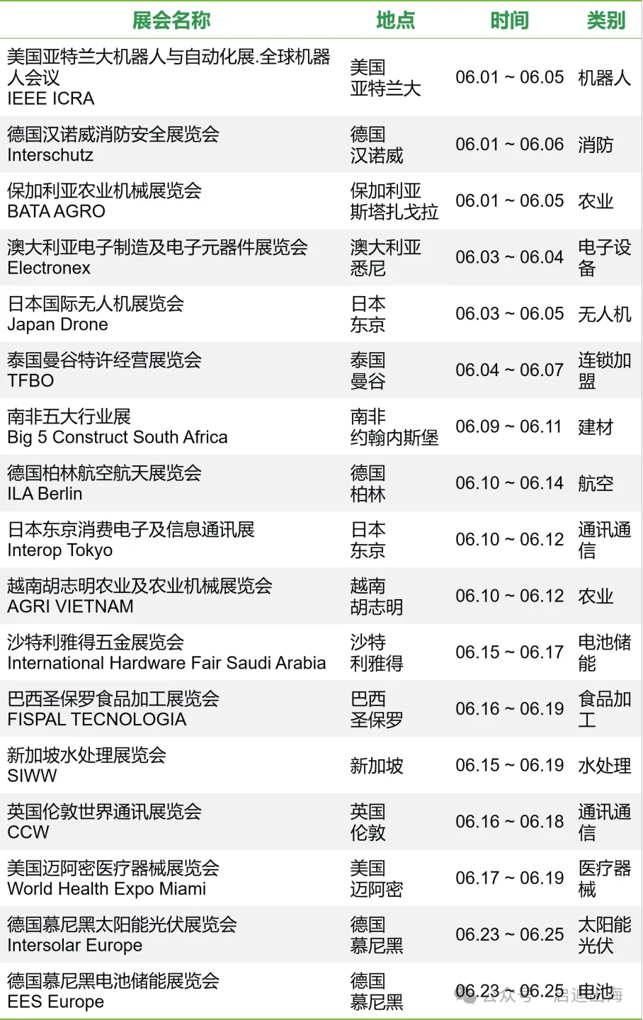 6月国际展会精选