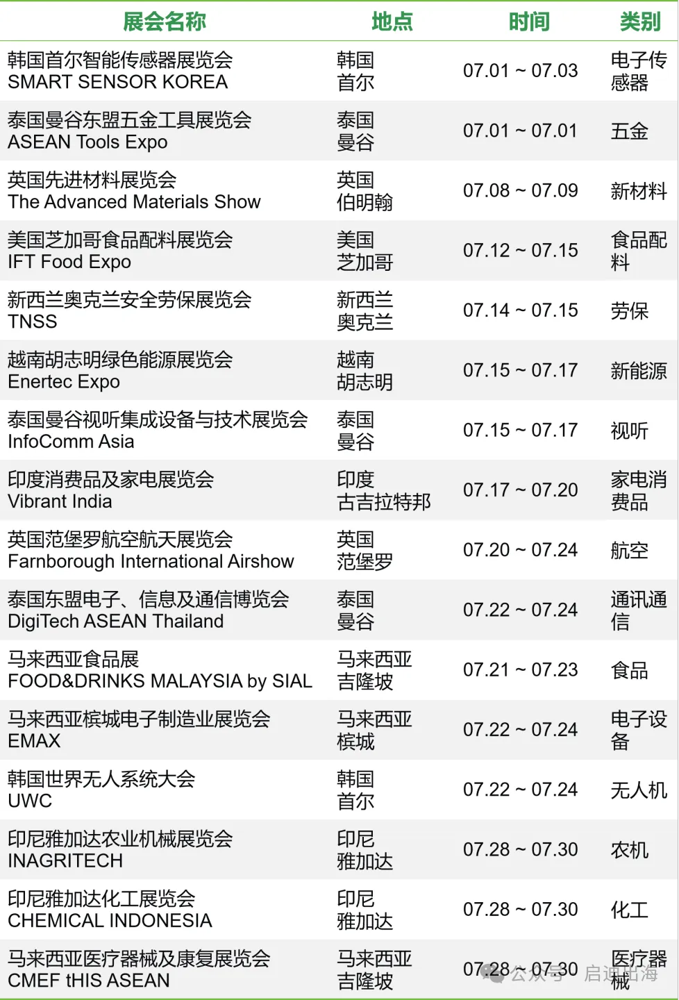 7月国际展会精选