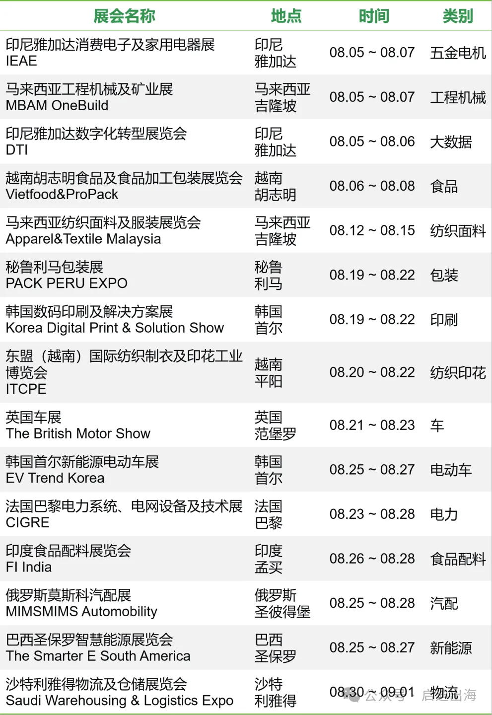 8月国际展会精选