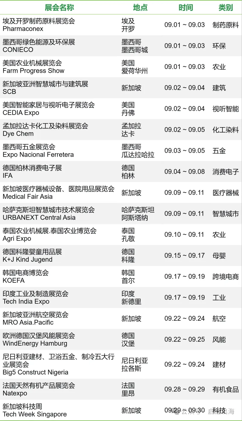 9月国际展会精选
