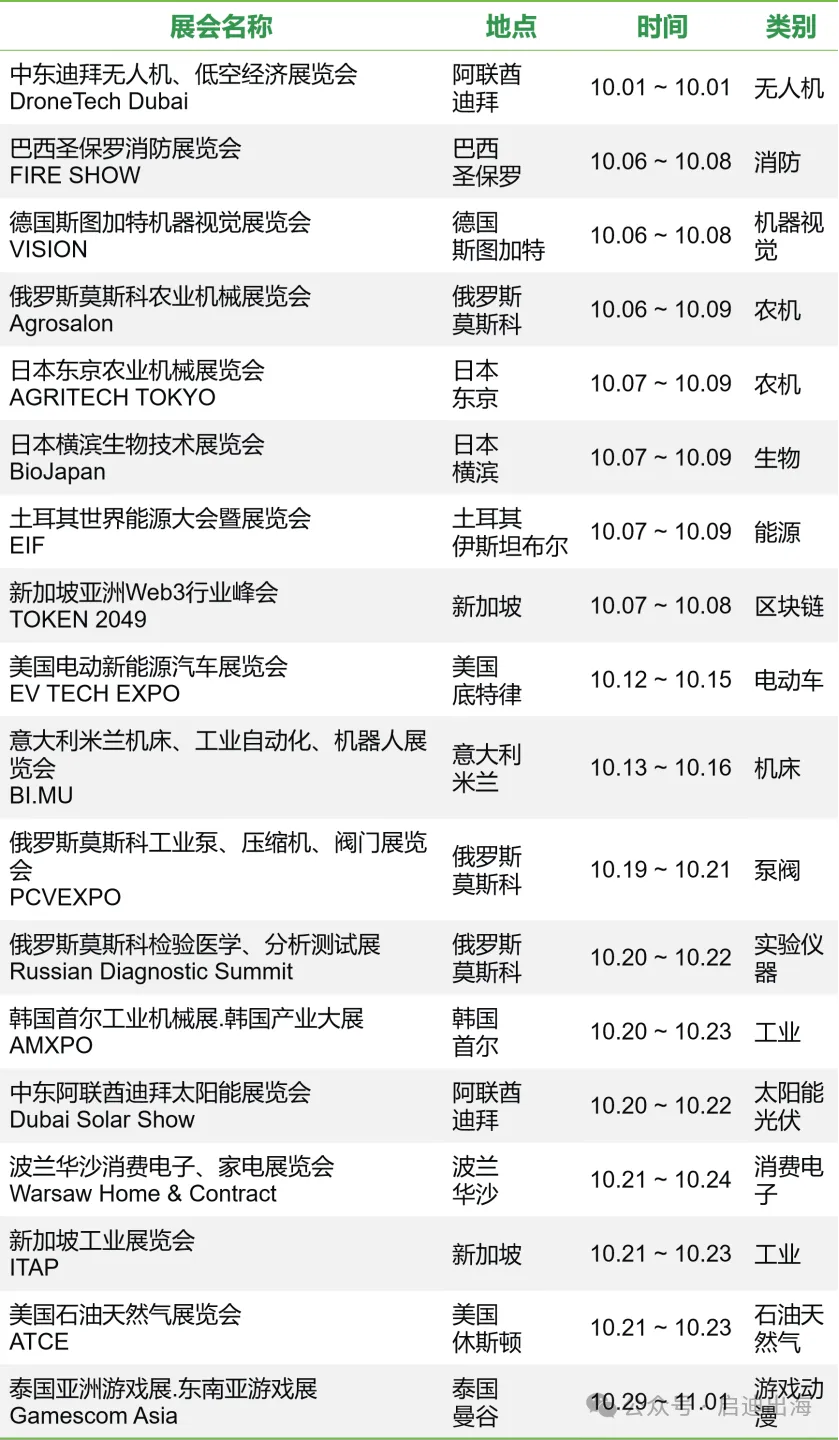 接下来,启迪之星(天津)将持续依托启迪之星的资源优势与网络优势,为企业提供出海服务全方位支持,助力企业借助平台精准链接全球资源、深化产业合作、加速海外市场布局。本清单所列展会信息以公开资料为基础整理,具体安排以主办方最终发布为准。