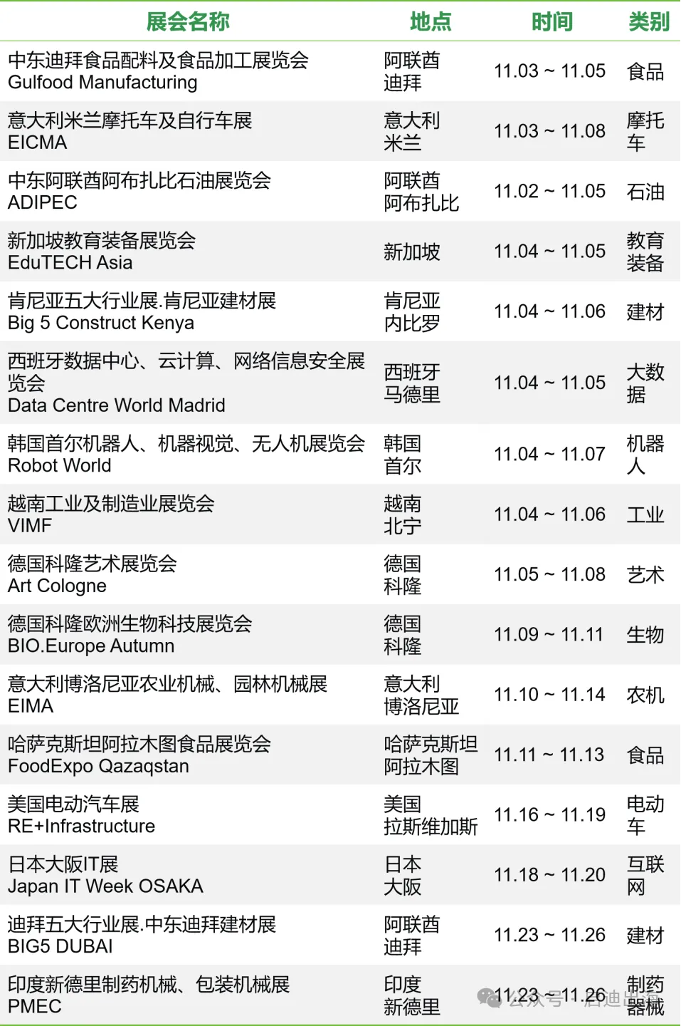 11月国际展会精选