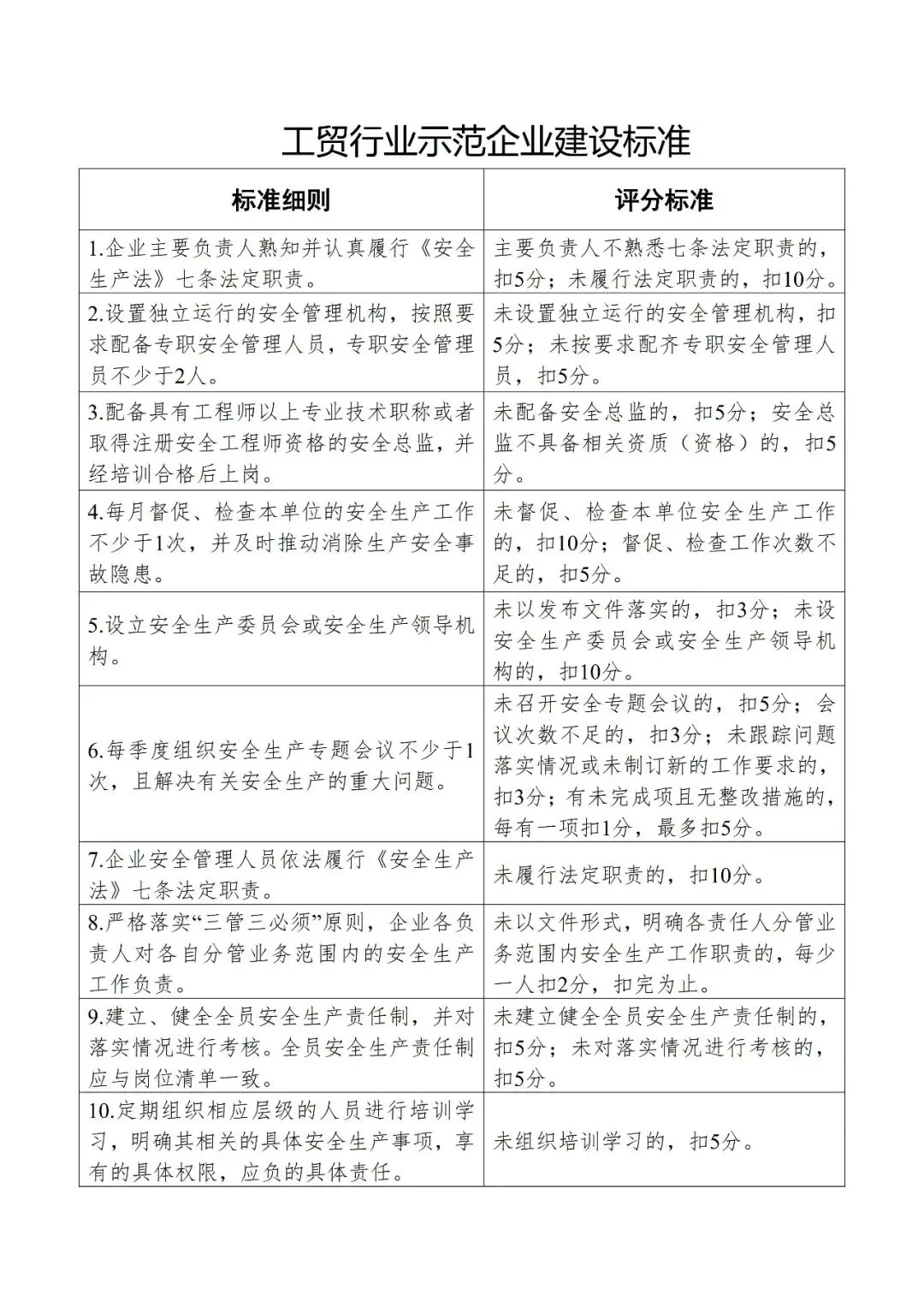 【检查表】工贸行业示范企业建设标准