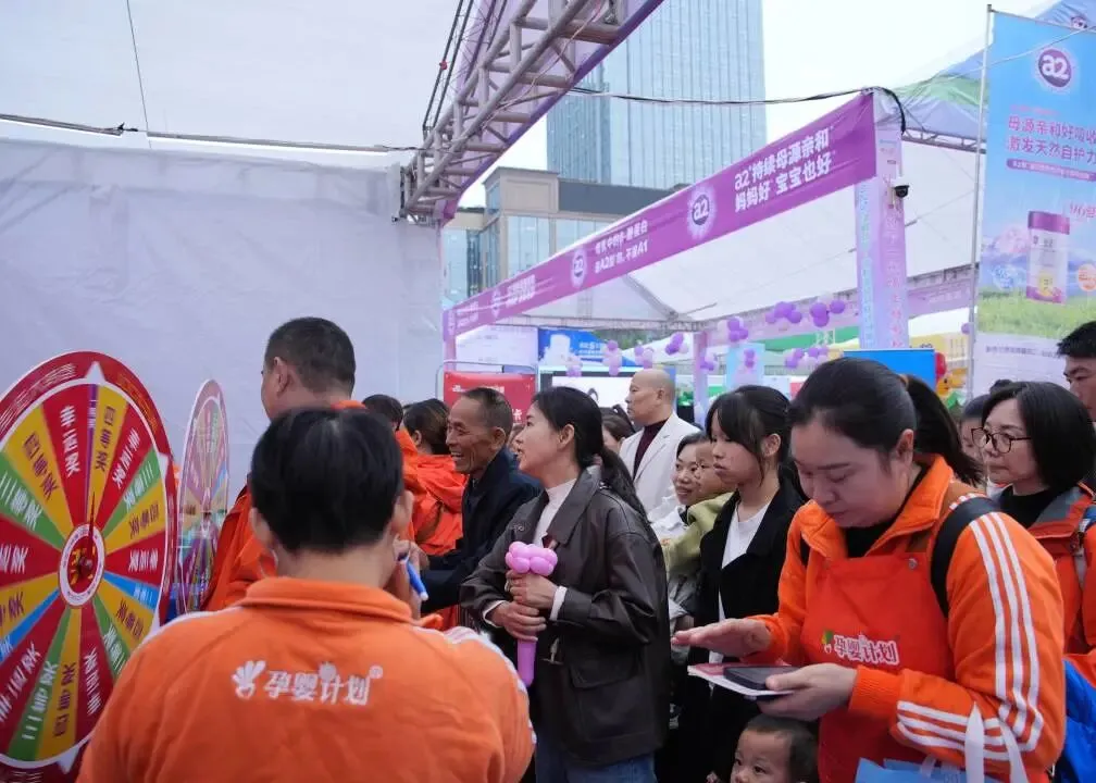 活动现场水泄不通“扫码扫码,后面还在等!”咨询区更是被宝妈奶爸们团团围住“这款奶粉适合过敏宝宝吗?”