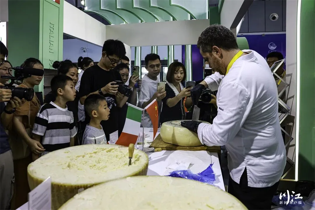 19日,泸州国际会展中心E馆的意大利主宾国馆开馆后,迎来不少好奇的观展者。而现场一款自带橙黄色甜酱的奶酪颇受大家欢迎。细问后得知,橙色甜酱是由纳溪区天仙硐枇杷制作而成。主厨现场介绍,可以“咬狠”一口,让果汁甜蜜的口感与略酸的奶酪风味相融,体验绝佳风味。