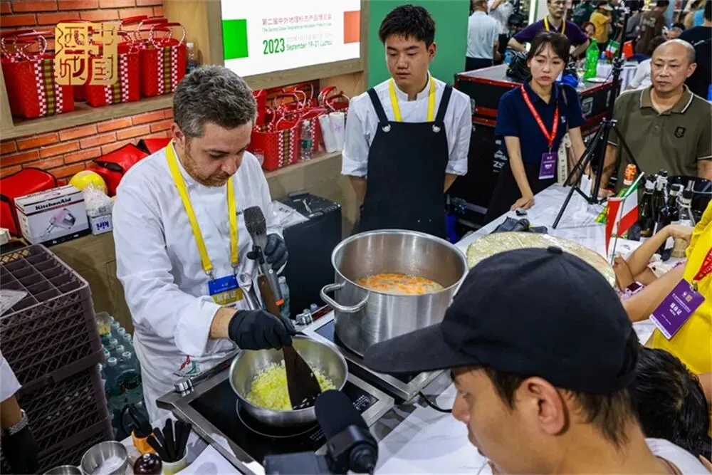 当天,来自意大利的意万餐饮管理有限公司行政总厨Fabio Falanga现场演示、制作并讲解了意大利烩米饭、意式宽面、戈贡佐拉芝士蛋糕等三道菜肴,汇入了泸州本地水果和四川腊肉的食材元素,让人感受到不同风味融合的美妙。9月20日,现场还会制作水牛奶酪酱、面球、慢烤里脊肉等美食,邀请观展者品尝。