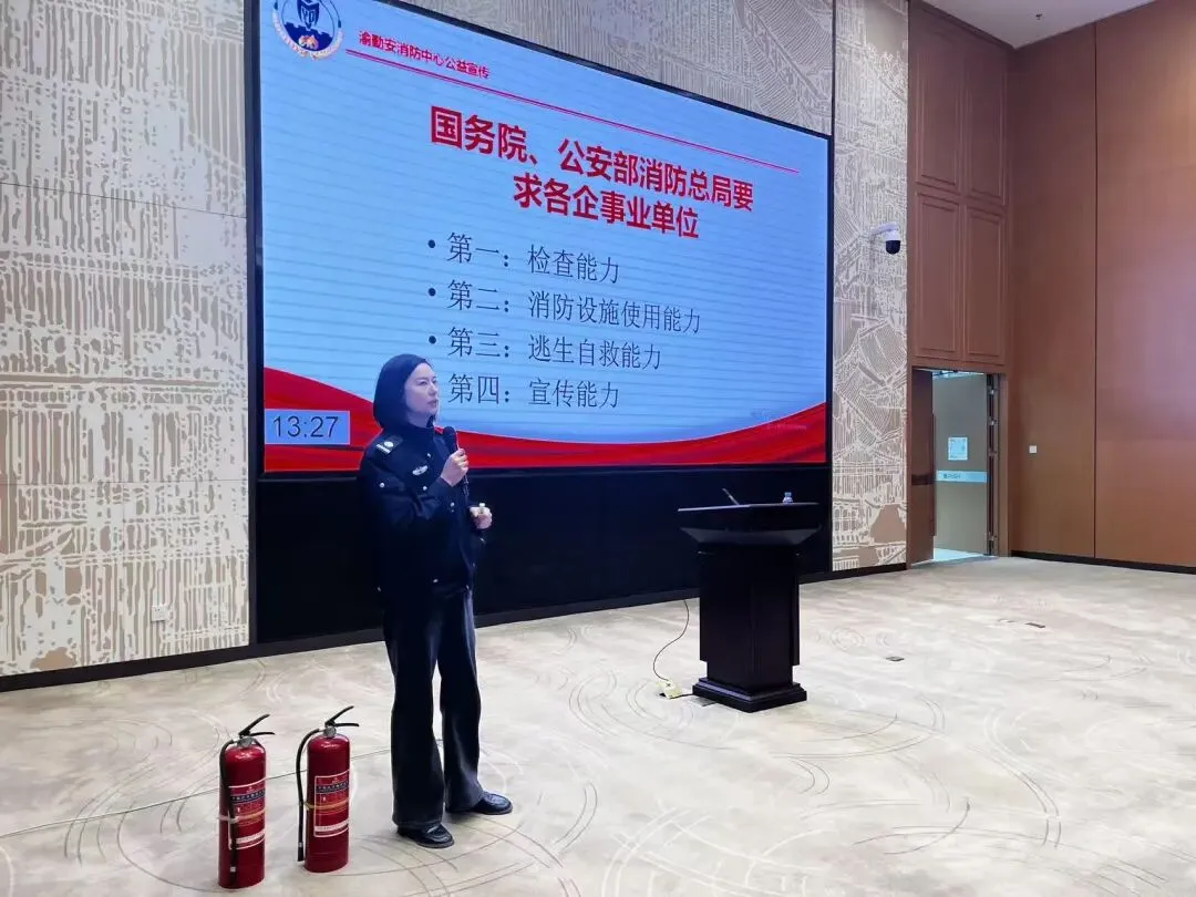 此次培训邀请消防培训中心渝勤安教官授课,采用理论授课形式。教官结合办公场景与真实案例,系统讲解安全知识,帮助全员明晰安全防护要点、夯实知识储备。