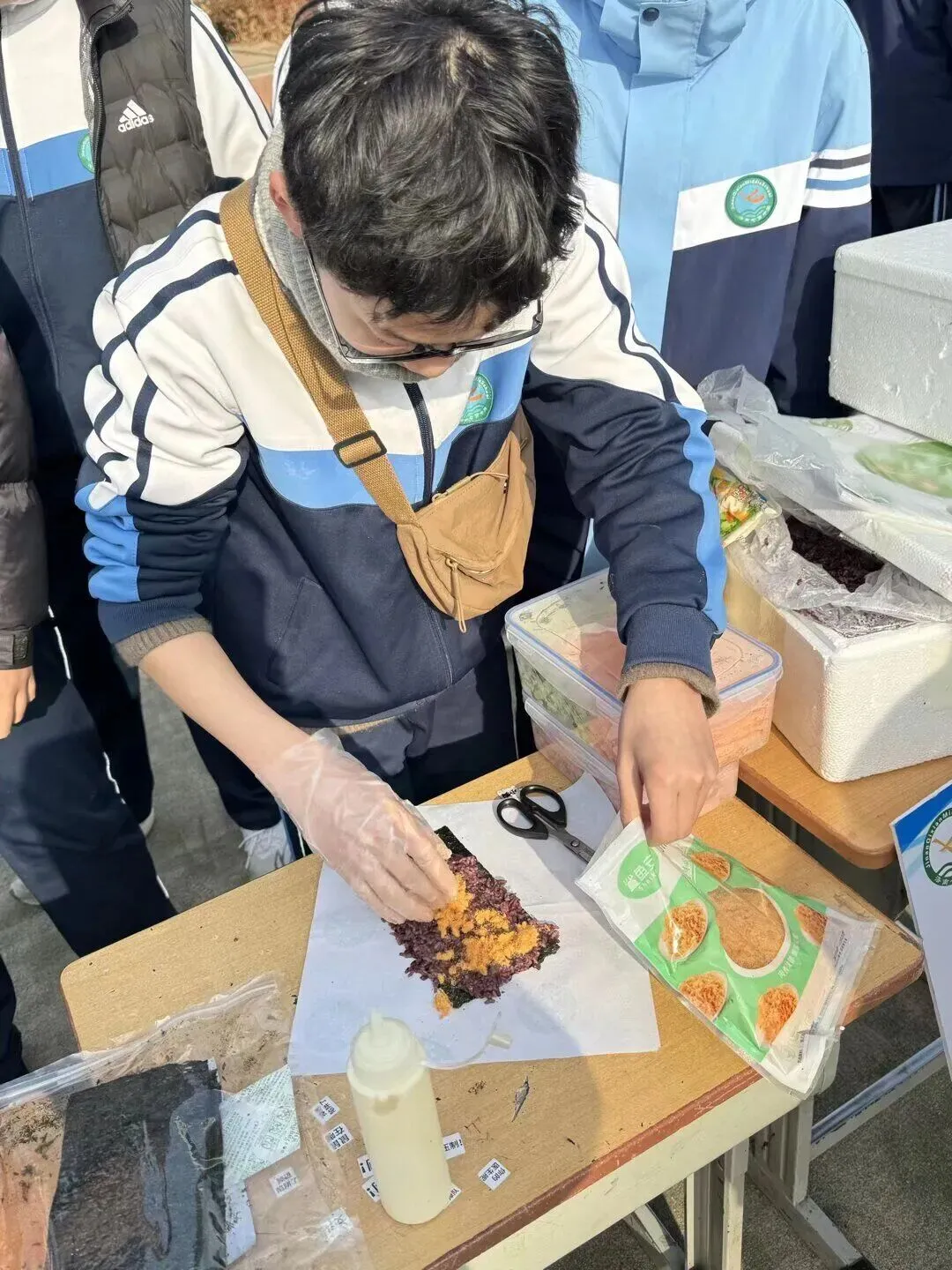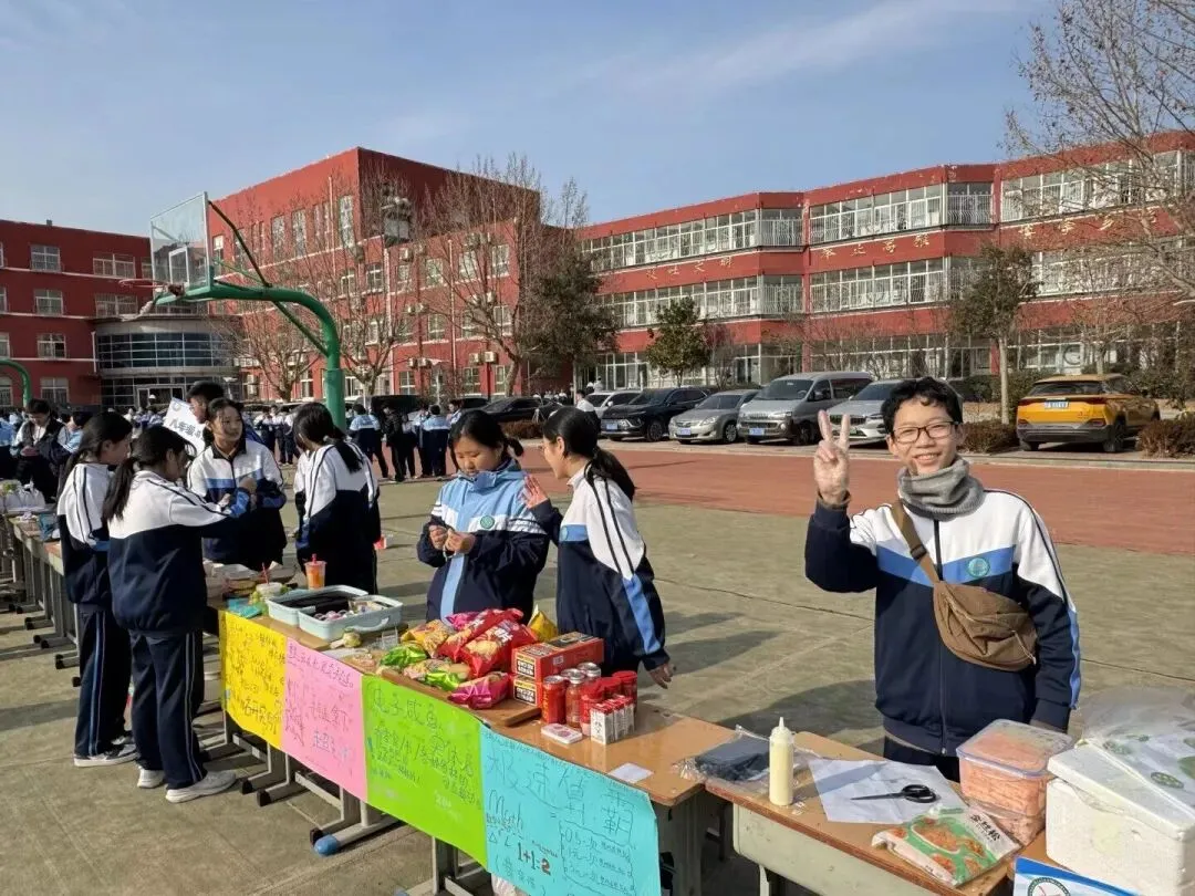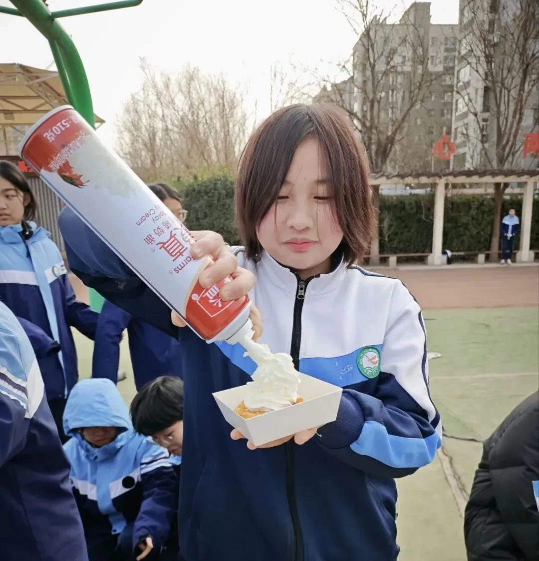 其中食品类摊位堪称人气担当,刚走进会场阵阵香气就扑鼻而来,同学们亲手制作的棉花糖、曲奇饼干、水果捞、烤肠,还有精心包装的固体版杨枝甘露、自制饭团,每一样都颜值与口感并存,小摊主们热情吆喝着“这是我和妈妈一起提前准备的蔓越莓饼干,都是今天早上新鲜烤的!”“来尝一尝我们的水果捞,水果都是现切的,清甜又爽口~”,脸上洋溢着自信的笑容,前来品尝的同学们络绎不绝,一口下去满满的都是幸福的味道,也让这场交易会多了几分烟火气与温暖。