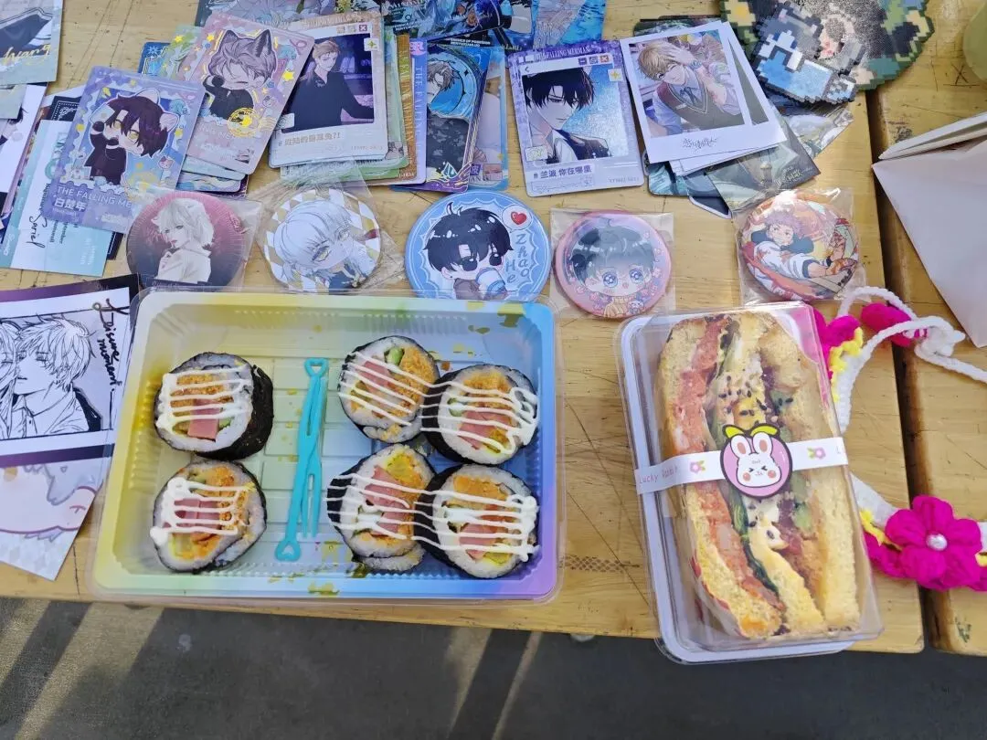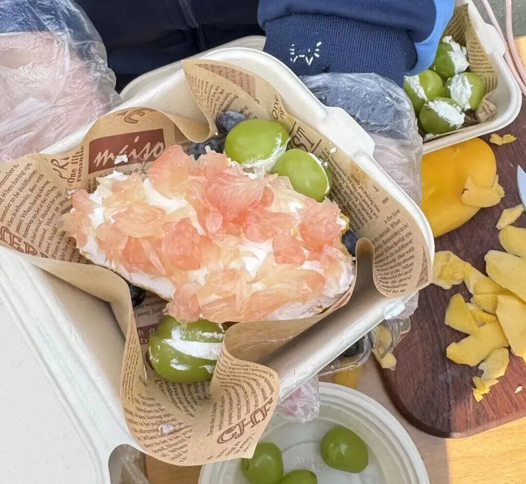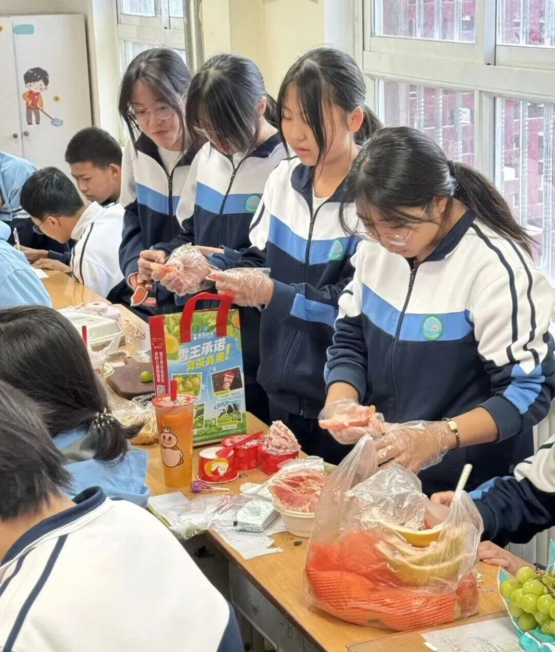 其中食品类摊位堪称人气担当,刚走进会场阵阵香气就扑鼻而来,同学们亲手制作的棉花糖、曲奇饼干、水果捞、烤肠,还有精心包装的固体版杨枝甘露、自制饭团,每一样都颜值与口感并存,小摊主们热情吆喝着“这是我和妈妈一起提前准备的蔓越莓饼干,都是今天早上新鲜烤的!”“来尝一尝我们的水果捞,水果都是现切的,清甜又爽口~”,脸上洋溢着自信的笑容,前来品尝的同学们络绎不绝,一口下去满满的都是幸福的味道,也让这场交易会多了几分烟火气与温暖。