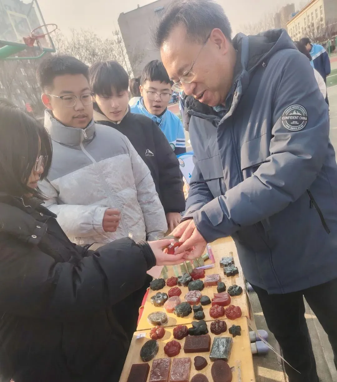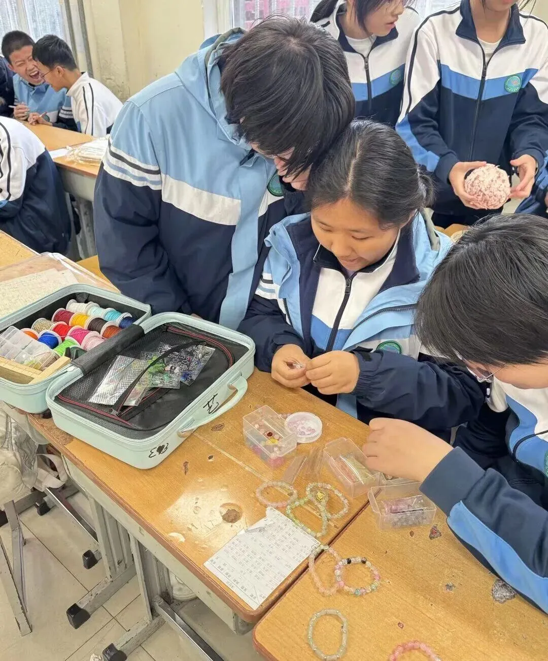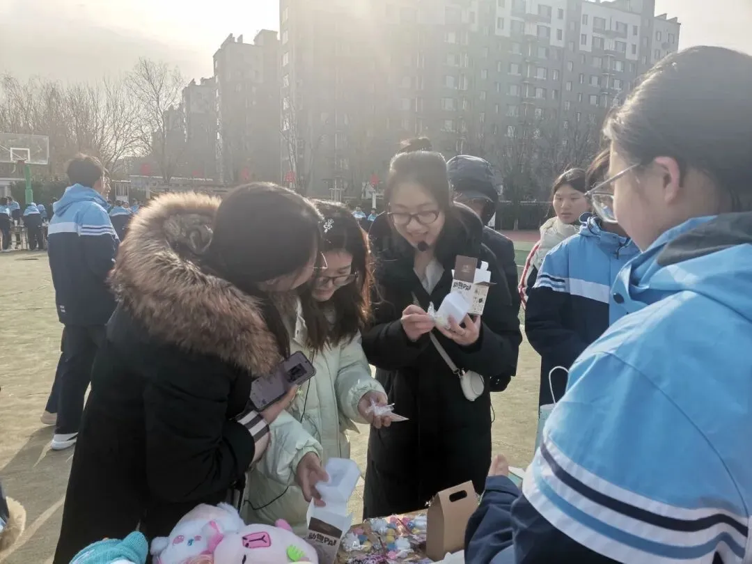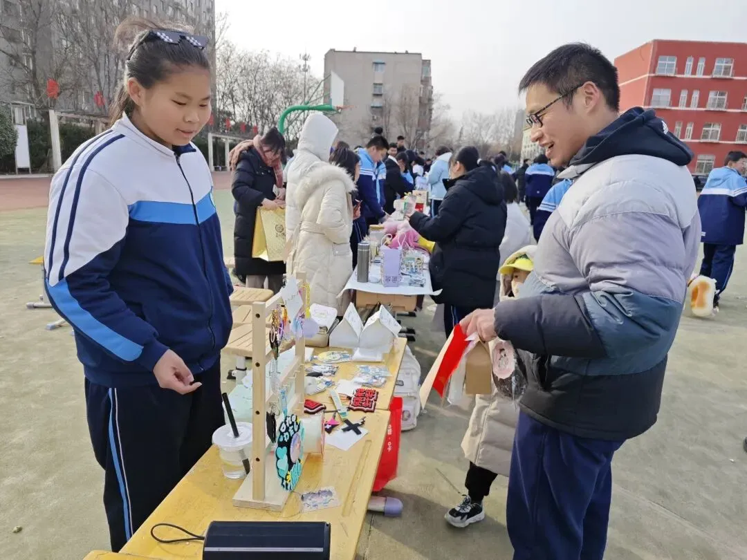 手工类摊位则是一场创意的盛宴,汇聚了同学们的奇思妙想与匠心巧思,好看又实用的手工香皂、精致的串珠手链、可爱的摆件、独具风格的手绘书签、各式各样的拼豆图案……每一件手工作品都凝聚着同学们的心血与创意,细节之处尽显用心,小摊主们耐心地向大家介绍作品的制作过程,有的还现场展示制作技巧,吸引了不少同学驻足观看、选购,有同学拿着刚买到的黏土小熊开心地说“这个黏土小熊太可爱了,我要把它买下来当作新年礼物送给好朋友!”,这些充满温度的手工作品不仅传递了创意,更承载了同学们对新年的美好祝福;