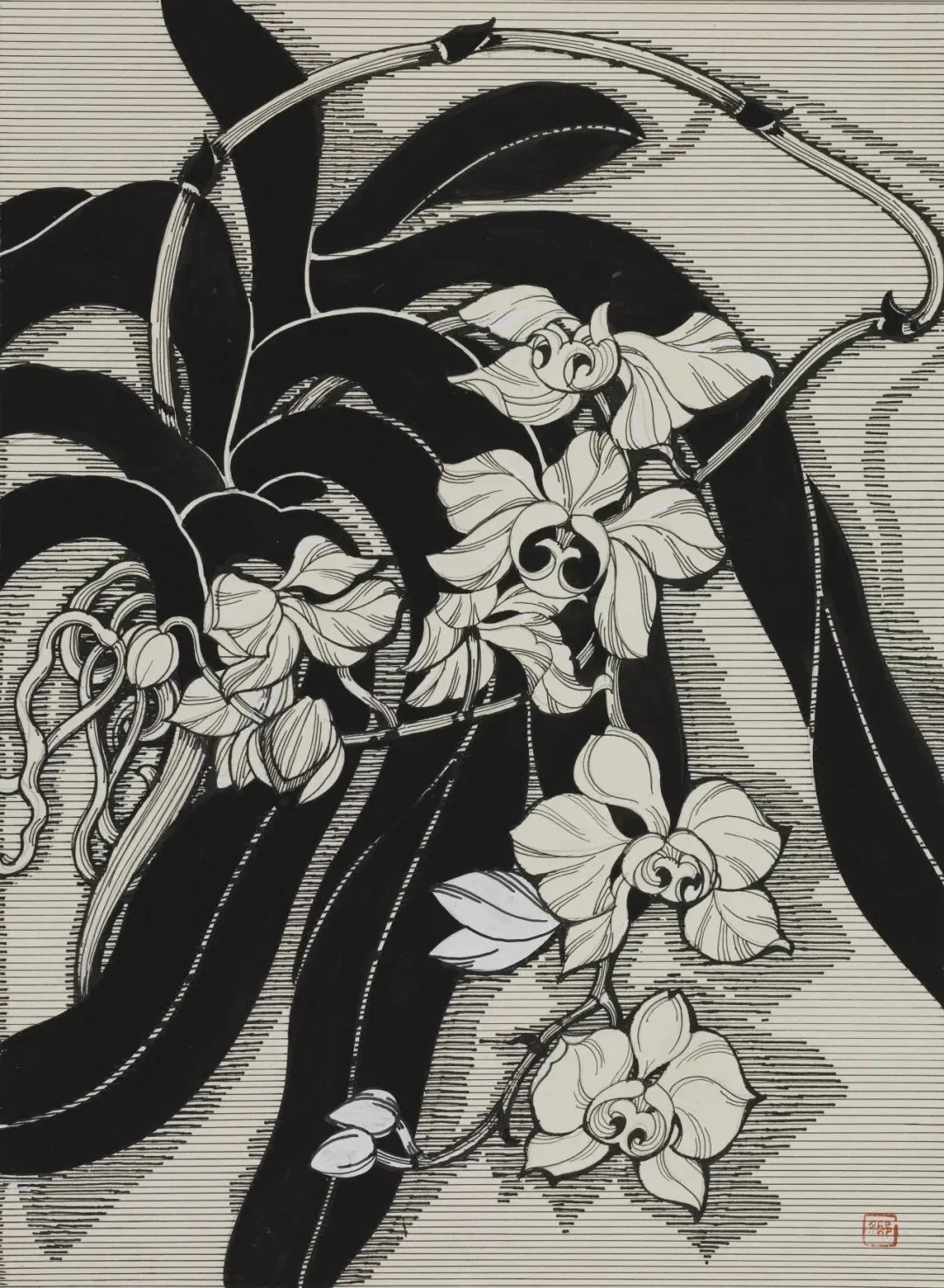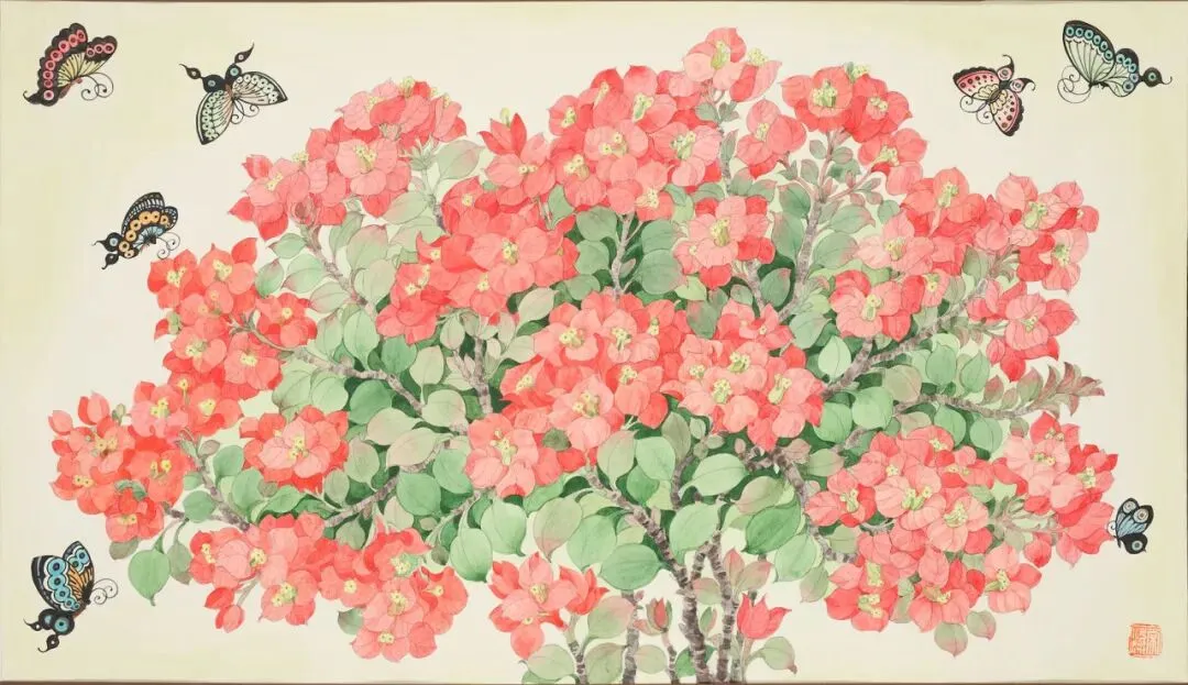 《花卉-勒杜鹃与蝴蝶》常沙娜
