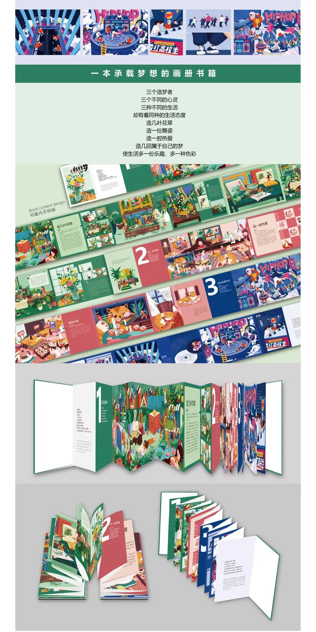 面对现代社会日益紧张的生活,通过研究当代年轻群体生活所围绕的无趣生活和压力下心理和行为研究,以书籍形式融合丰富视觉设计展现生活常态,宣传并引导群体在紧张枯燥生活夹缝中用理智认知和行为方式去找寻情感表达而释放压力,从而获取一份独有的轻松。