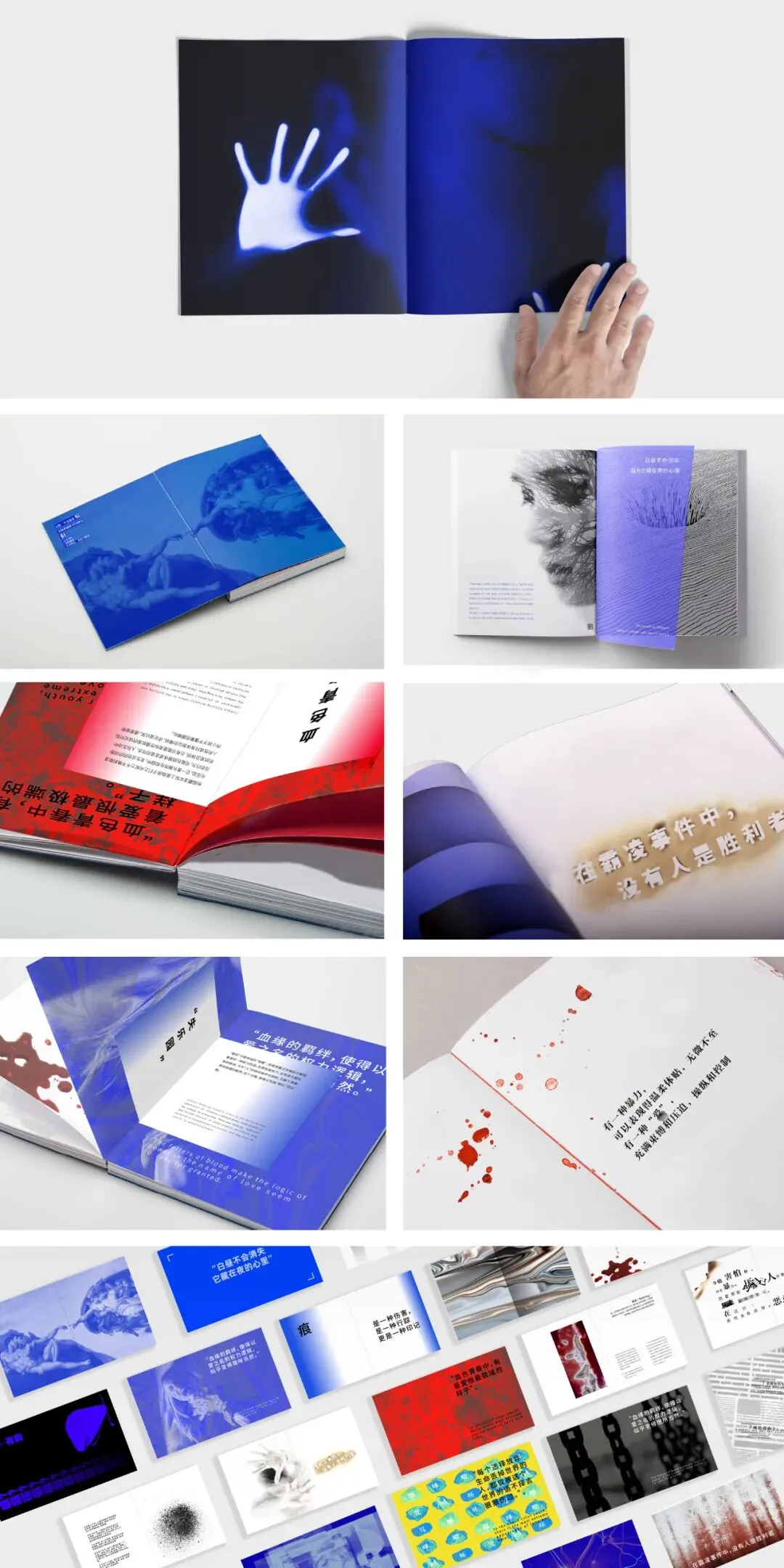 天地万物生于有,有生于无。“无痕计划”以“痕”作为探索心理创伤的切入点,不同痕代表不同创伤,借着“有痕”来表达“无痕”的理念,书中信息隐藏其中,意义不在于给人“答案”,而在于“寻找答案”。从视觉到意识上引起人们的思考和反思,更好的认知自我。
