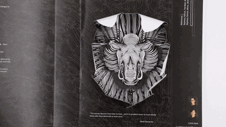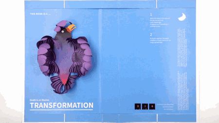 书中的图案会根据温度的变化而产生形变。可能你上一秒还沉浸在一亿年前的幻想花园里,下一秒又可以在梵高的星空中遨游;亦或是你左手和手形机器人交互,右手去挑逗书中可爱的汪星人;你还可以为羽毛斑斓的鸟儿的破壳而出感到欣喜,或是被“狼犀兽”的变形吓得瑟瑟发抖……