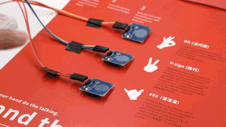 目前普遍用于3D打印的一种材料就是热塑材料。同学们把这种材料打印在纸上,接下来就是发挥创意设计书本了。例如有些同学使用了电热丝,这样可以精细地加热特定的部件,于是一本可以和读者互动,摆出“666”手势的图书就诞生了。