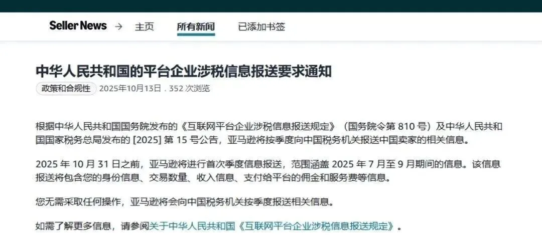 一边是《互联网平台企业涉税信息报送规定》(国务院令第810号)正式落地,要求亚马逊等平台在季度结束后次月内,向税务机关报送卖家身份、收入、银行账户等核心涉税信息,税务合规压力瞬间拉满。