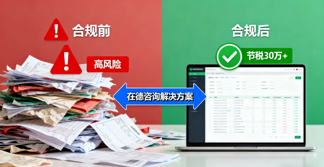 案例 1:广州某独立站跨境电商企业,因私户收款、发票缺失面临税务稽查风险。在德咨询为其制定合规方案:规范对公账户收款流程,补充合规成本凭证,申请跨境电商综试区免税政策,最终帮助企业规避稽查风险,每年合规节税 30 余万元。
