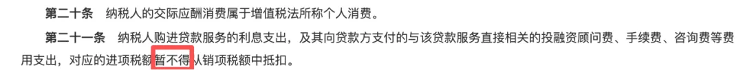 变化2:第二十条&第二十一条,贷款服务抵扣从"不得"变为"暂不得"