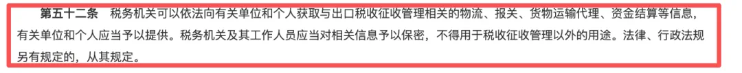 这是数据管理时代的标志性条款。税务机关现在可以直接从物流公司、货代、银行、支付平台等获取你的交易数据,不再需要完全依赖企业自行申报