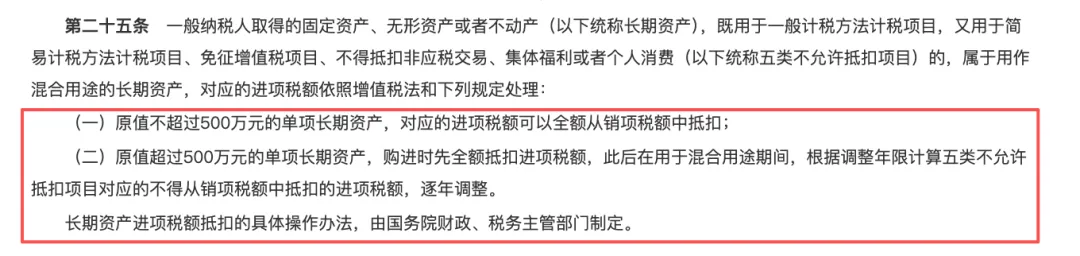 条款4:第二十五条,500万是固定资产抵扣的分界线