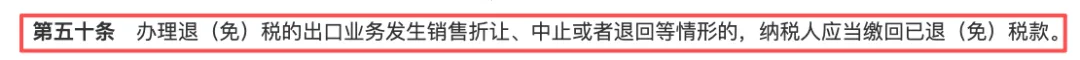 跨境电商退货率普遍较高,这个条款非常重要。一旦发生退货:及时联系财务开具红字发票;保留退货物流单据;如果已经申报退税,要按第五十条规定缴回已退税款