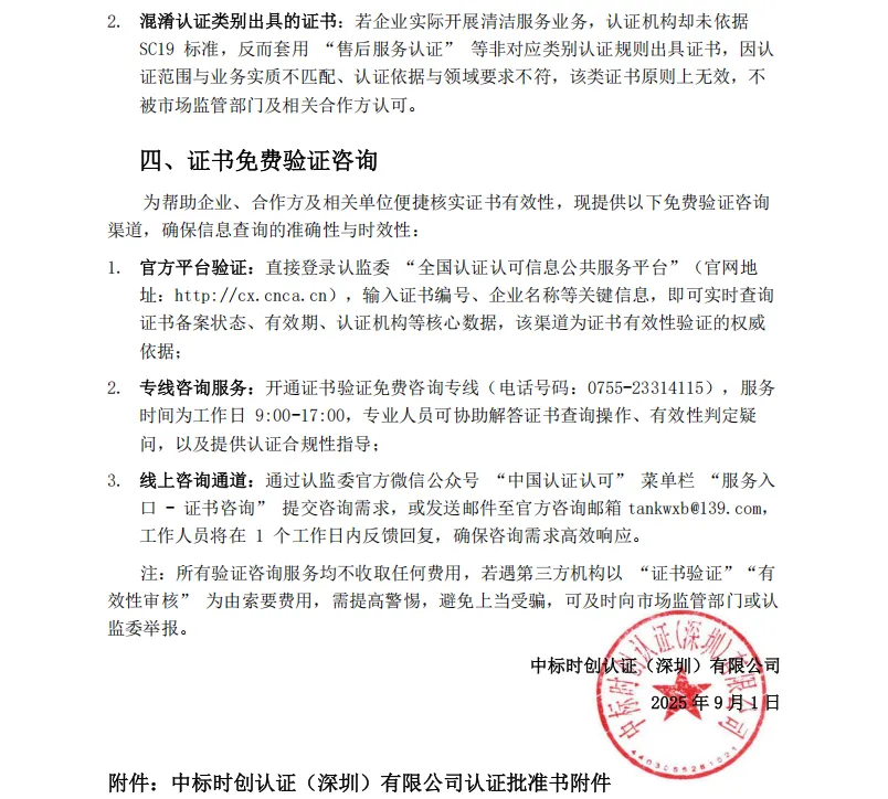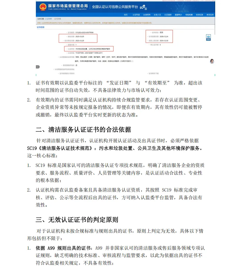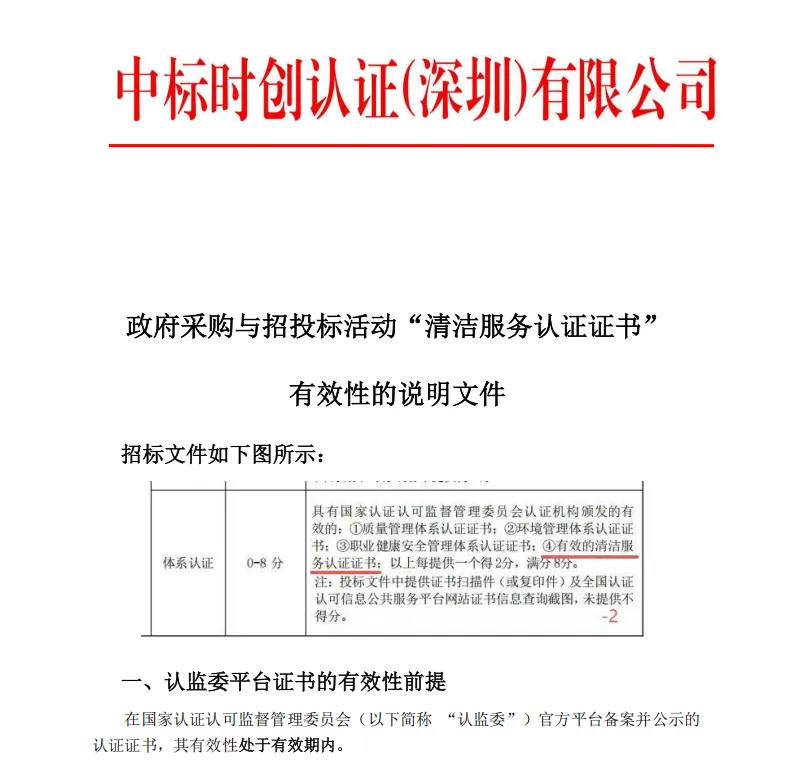 政府采购与招投标活动“清洁服务认证证书”有效性的说明文件