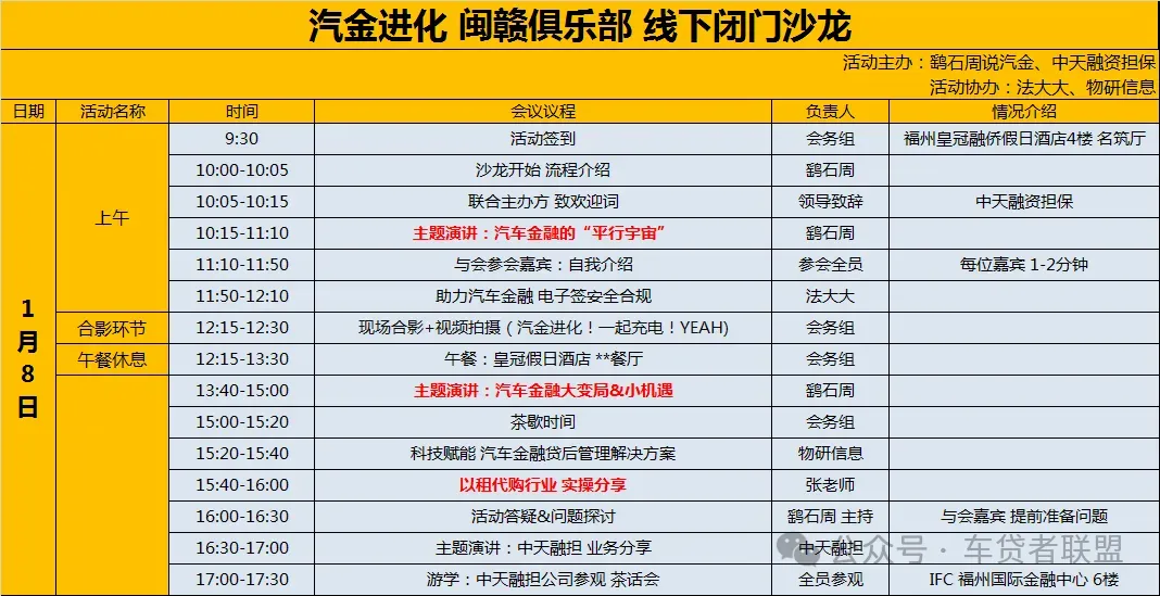 其一:走遍中国:祖国的大好河山养育了不同地区的不同特色,即使是汽车金融行业如此同质化竞争的时代,各地的市场还是各有特色和差异,通过活动的举办将当地的汽车金融同行聚在一起,研讨地方特色,一起对标共性。【鹞石周说汽金】写了近10年,积累了全国各地的众多汽车金融圈网友,正好借此机会线下见见面,共话汽车金融。