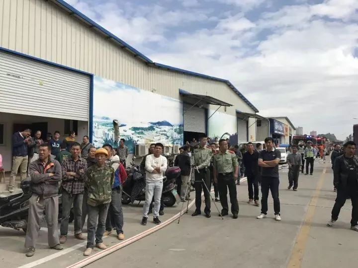 不少商户聚集在火灾的仓库附近围观