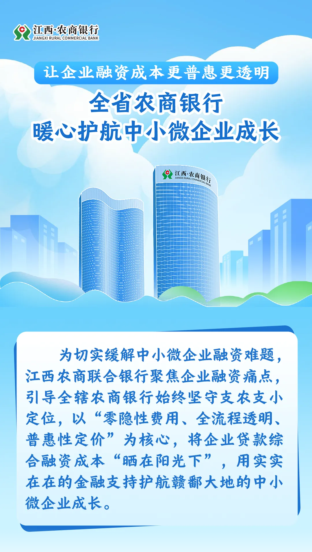 一直以来,全省农商银行始终将企业的发展需求放在首位,以透明化的综合融资成本、普惠化的金融政策、高效化的服务举措,为中小微企业搭建起低成本、便捷化的融资桥梁。下一步,全省农商银行将深入践行服务暖行战略,持续优化综合融资成本管理机制,让更多企业享受到“看得见、摸得着”的金融实惠,为江西实体经济高质量发展注入更强金融动能。
