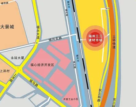 福州三三建材批发市场座落于三环路与福马路交界处,依托东三环交通枢纽辐射整个福州东部,市场占地面积200多亩,出租率高达85%