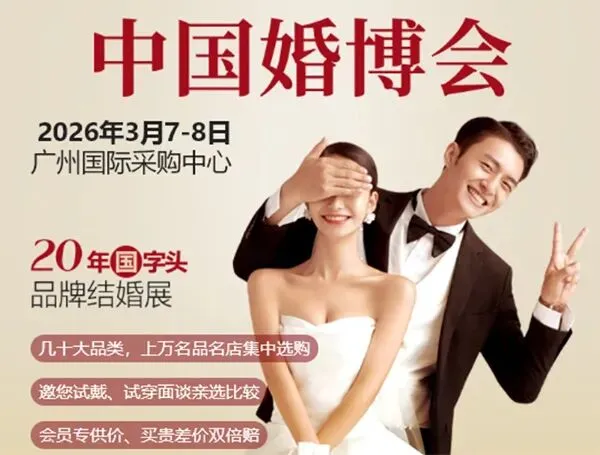 2026广州婚博会将于3月7-8日在广州国际采购中心重召开!中国广州婚博会严选国际国内一线大牌、小众精品、设计师定制品牌、30万款结婚新品,惠及结婚新人,让您享受高性价比一站式结婚采购服务、轻松筹备您的品质婚礼。