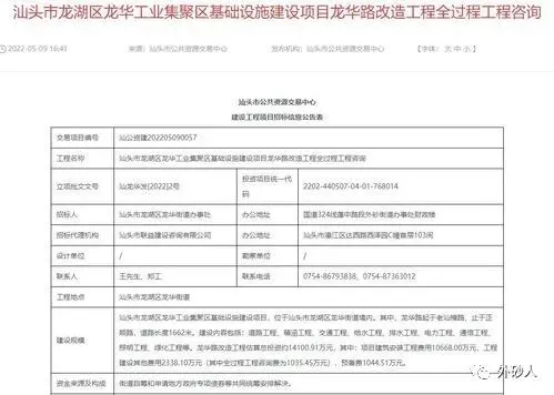 据市公共资源交易中心消息,日前,龙湖区龙华工业集聚区基础设施建设项目龙华路改造工程全过程工程咨询正在公开招标。