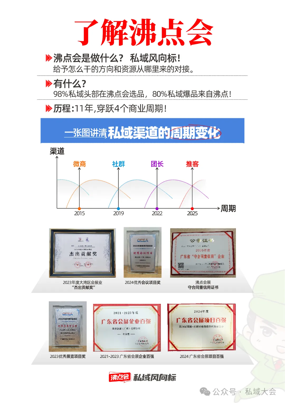 沸点会创办于2014年,是专注私域发展的生态链建设机构,被业界誉为“私域风向标”。沸点会深耕私域11年,主要解决私域“怎么干”的经验方法,以及资源“从哪里来”的对接问题。