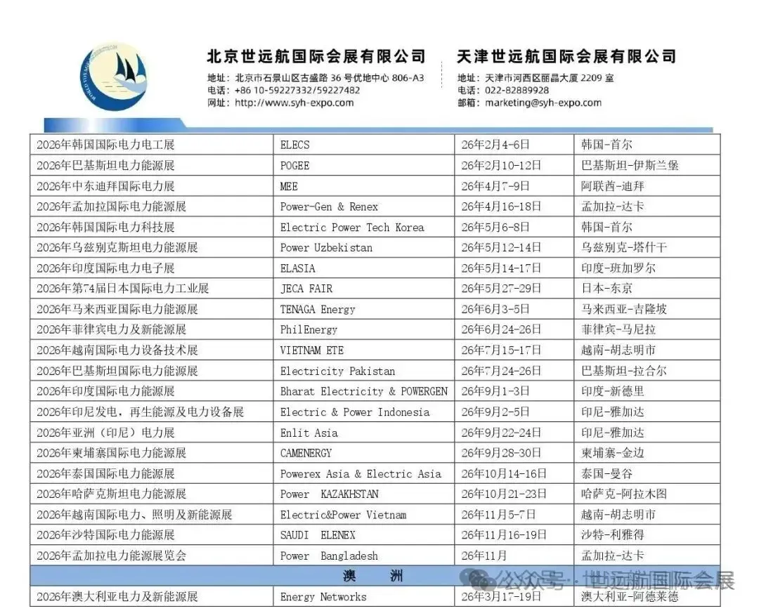 世远航国际会展有限公司自成立以来一直致力于策划、组织和承办国内外知名展会,为中国企业拓展海外市场服务,业务包含有电力,照明,环保,水处理,能源等行业。